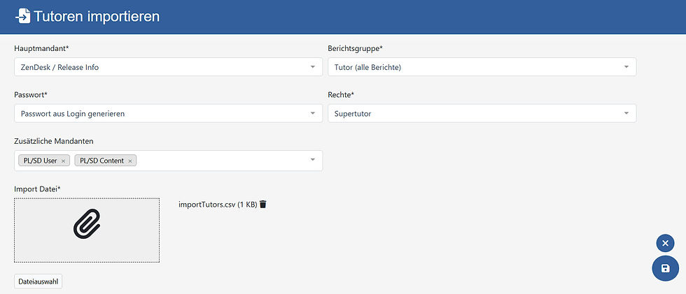 Mehrere Tutoren können nun über die Nutzerverwaltung in edoniq per CSV-Datei importiert werden. Dabei lassen sich Einstellungen wie Passwort, Tutorenrolle, zusätzliche Mandanten und Berichtsgruppe bereits beim Import vordefinieren.